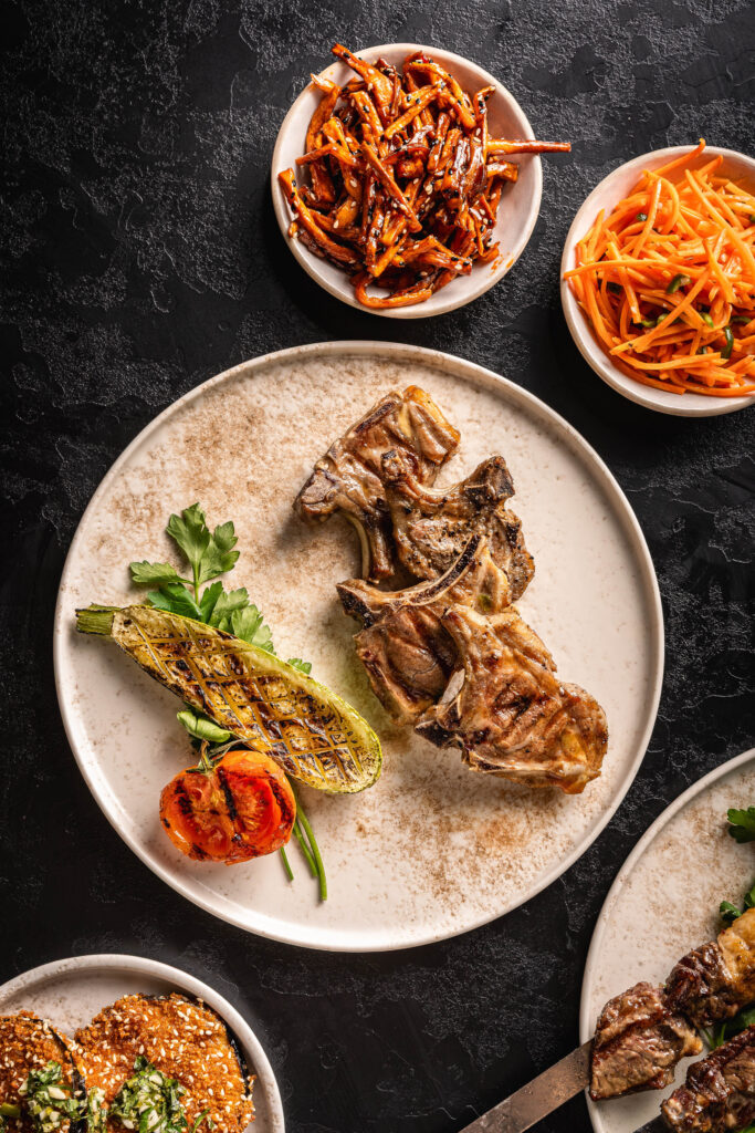 שפע סלטים טריים שמוגשים למרכז השולחן, מתחדשים כל הזמן ומזמינים אותך לטעום מהכל, בדיוק כמו שאנחנו אוהבים בישראל.